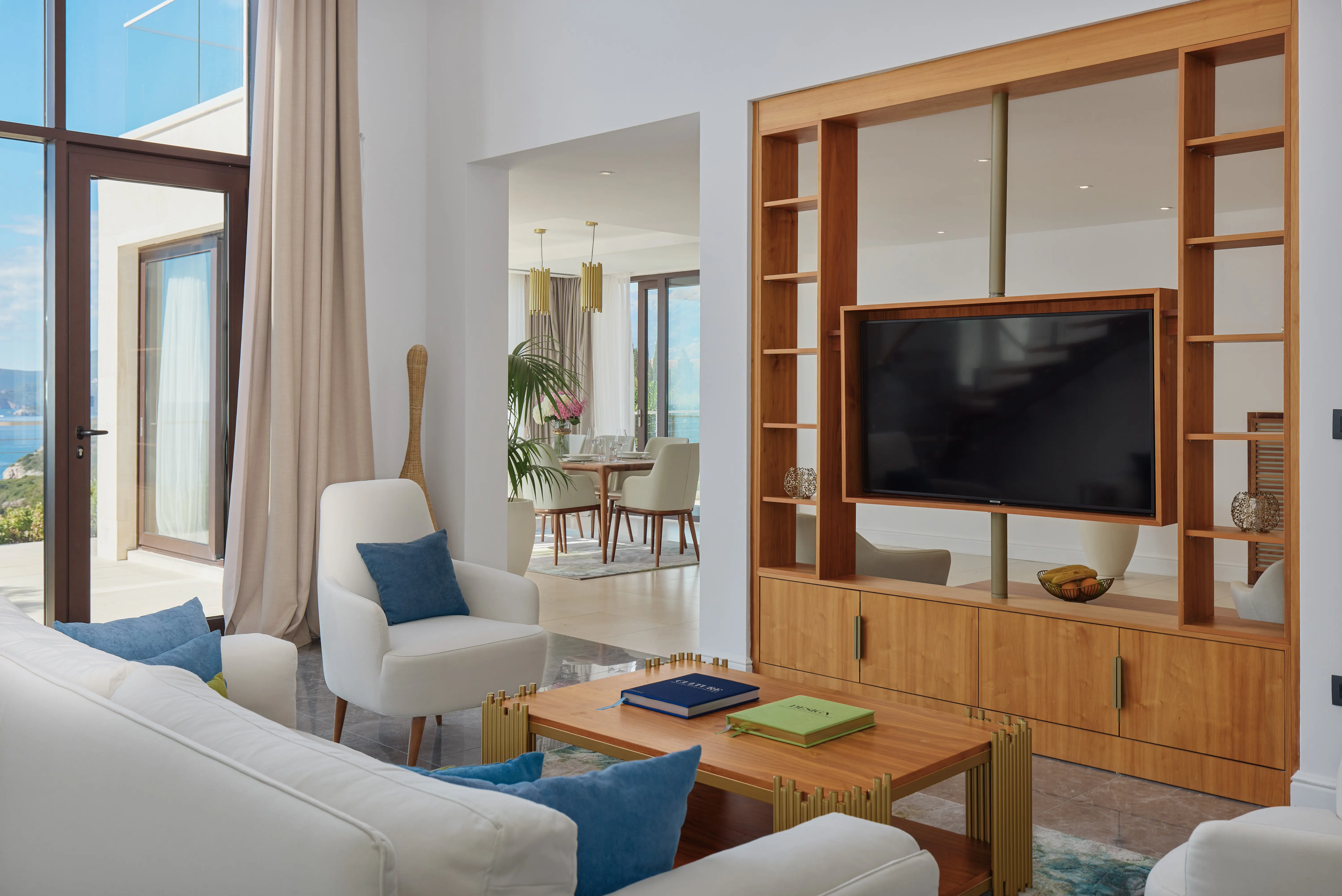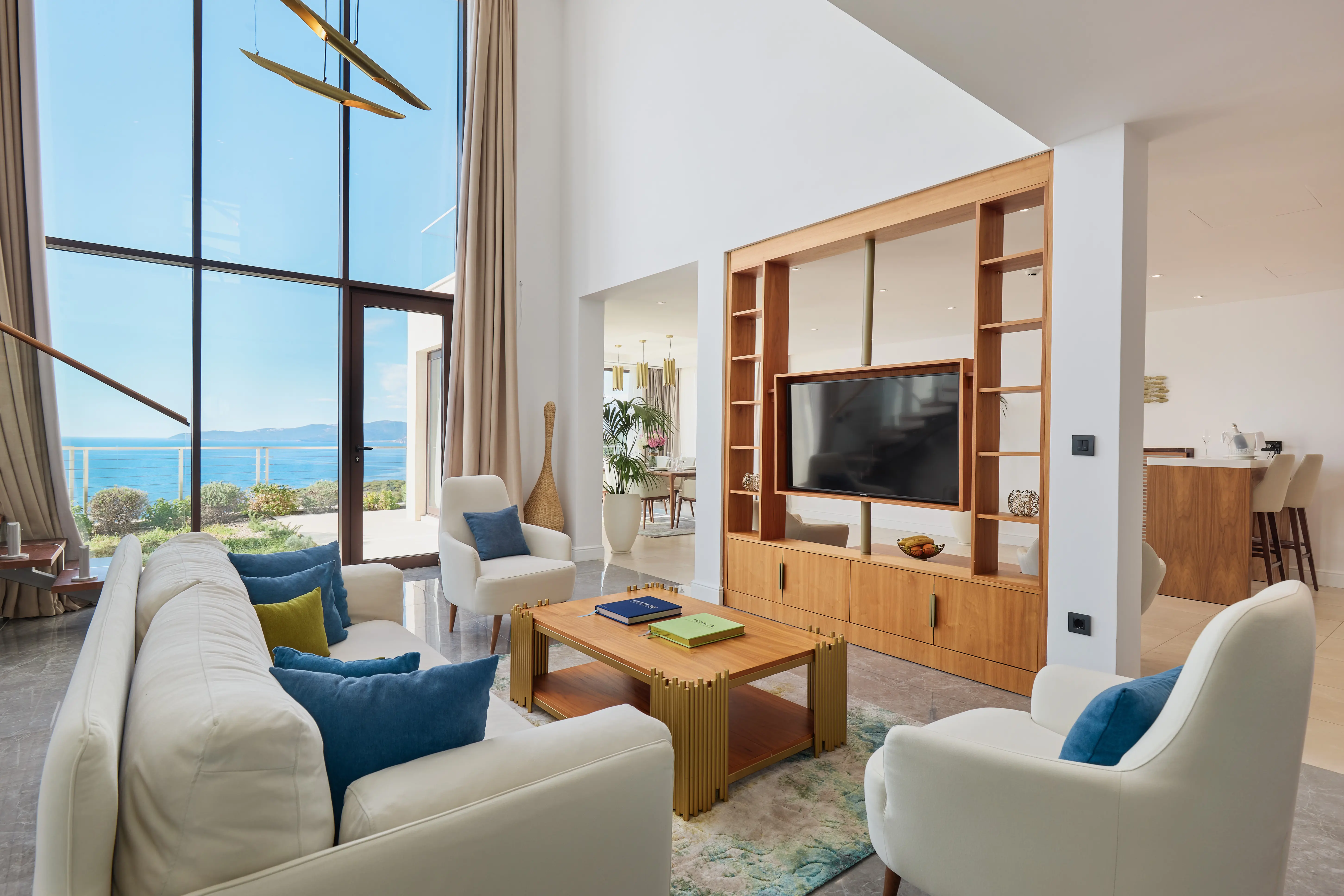 Designed for seamless modern living, the brightly lit interiors flow effortlessly from the spacious living areas to an open dining and kitchen space. Expansive seafront terraces feature a dedicated outdoor barbecue and dining area, creating the perfect Mediterranean setting for entertaining family and friends.